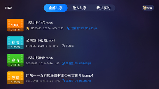 通过大屏登录115,在所有大屏设备上可直接观看自己云端的视频,畅享4K超高清画质,播放流畅不卡顿,帮你轻松打造专属的家庭视频播放厅,享受畅快过瘾的大屏视觉体验。