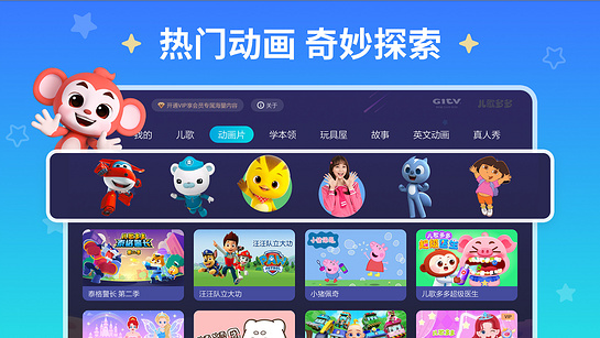 百万儿歌、故事、动画片,儿童舞蹈、手工画画、国学启蒙,亲子游戏,内容丰富寓教于乐。